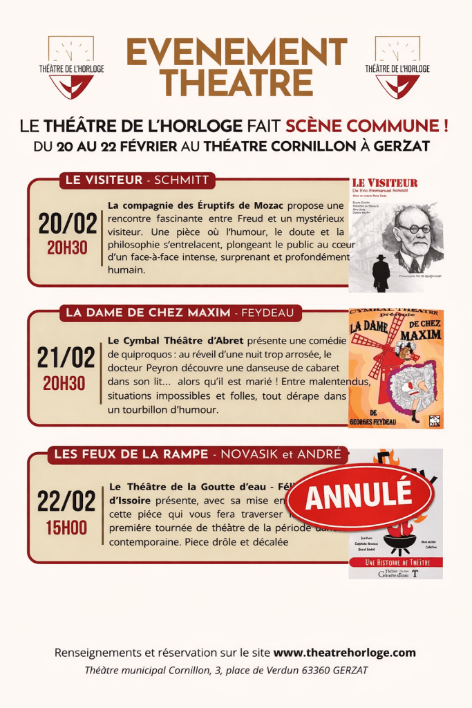 La troupe amateur du Théâtre de l’Horloge interprète de nombreuses pièces du répertoire classique et contemporain.